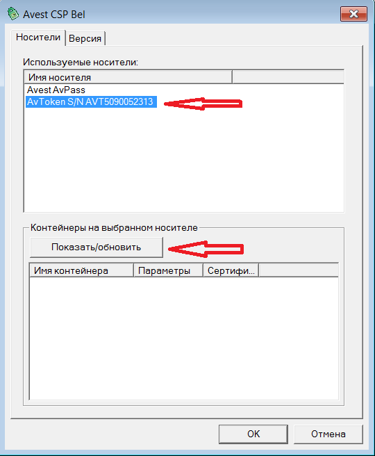 3. В открывшемся окне выберите Ваш носитель (кликните на нем левой кнопкой мыши) – Показать/обновить.