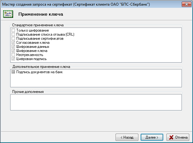 Затем появиться окно, в котором указано применение личного ключа пользователя.