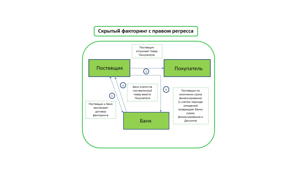 • Факторинг с правом регресса – Банк имеет право вернуть Поставщику неоплаченные Покупателем денежные требования